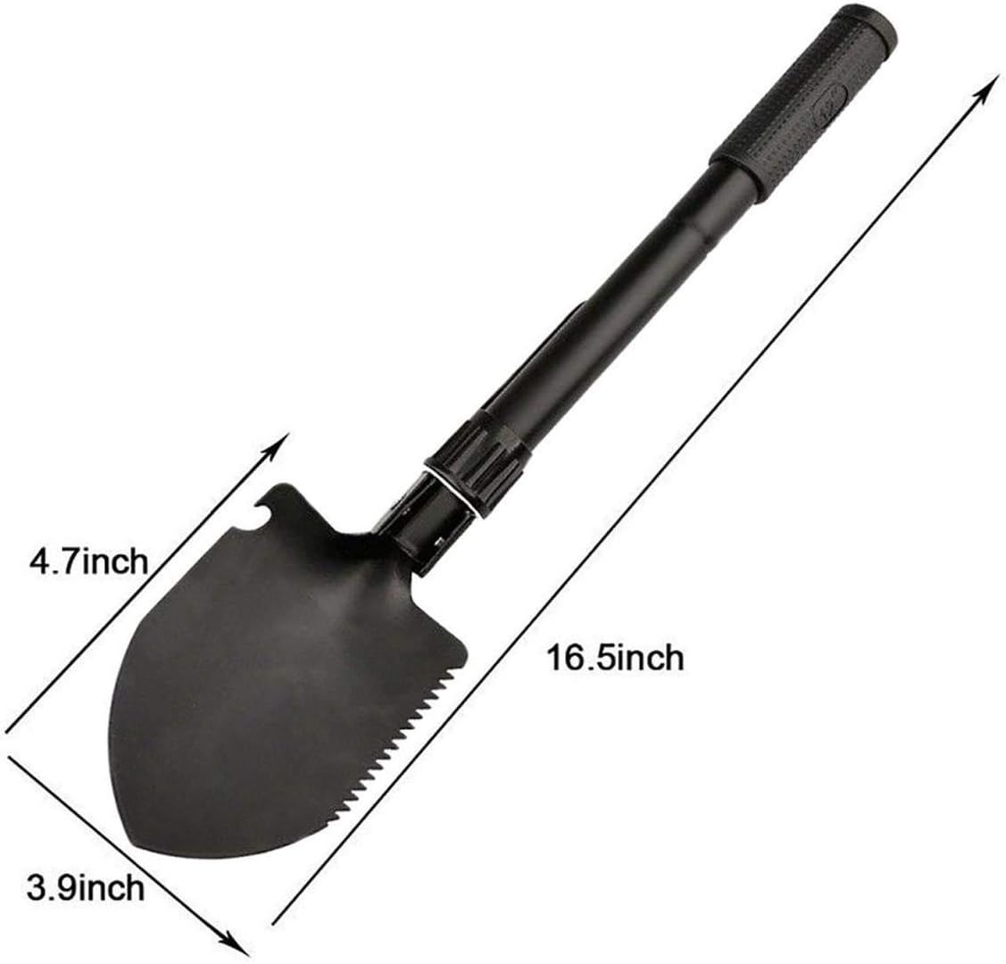 - سهلة الحمل- أدوات قابلة للطي خفيفة الوزن وصغيرة الحجم ويسهل الحصول على شنطة مناسبة. يتم تقديم شنطة الحمل للتعليق على حزام أو شنطة ظهر. مجرفة مثالية لحالات الطوارئ في السيارة وأدوات النجاة للرحال.