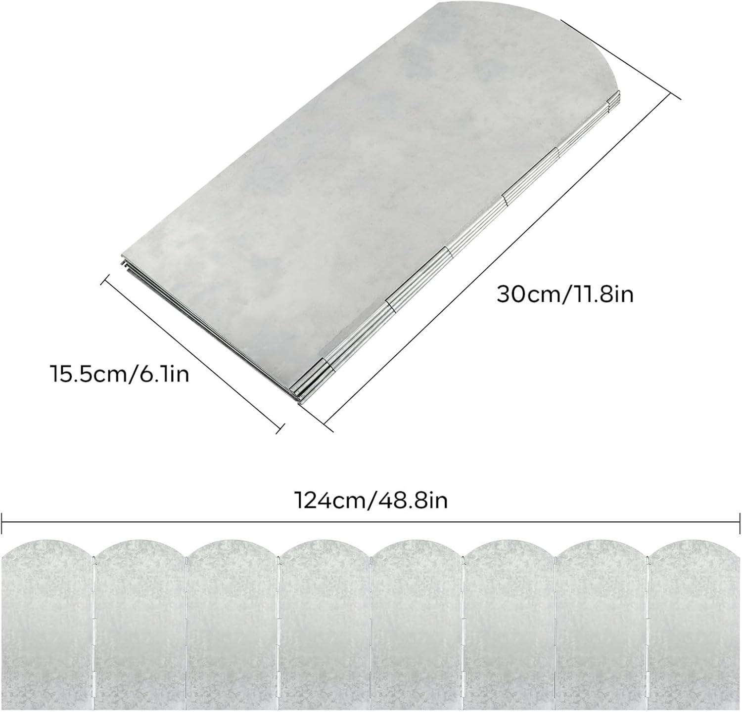 - موقد تخييم قابل للطي (مقاس غير مطوي) 47.2 انش × 15.7 انش/120 × 40 سم (مقاس العبوة) 16.54 انش*7.87 انش*0.69 انش/40*20*1.5 سم، وزن الزجاج الأمامي للموقد القابل للطي: 4 باوند