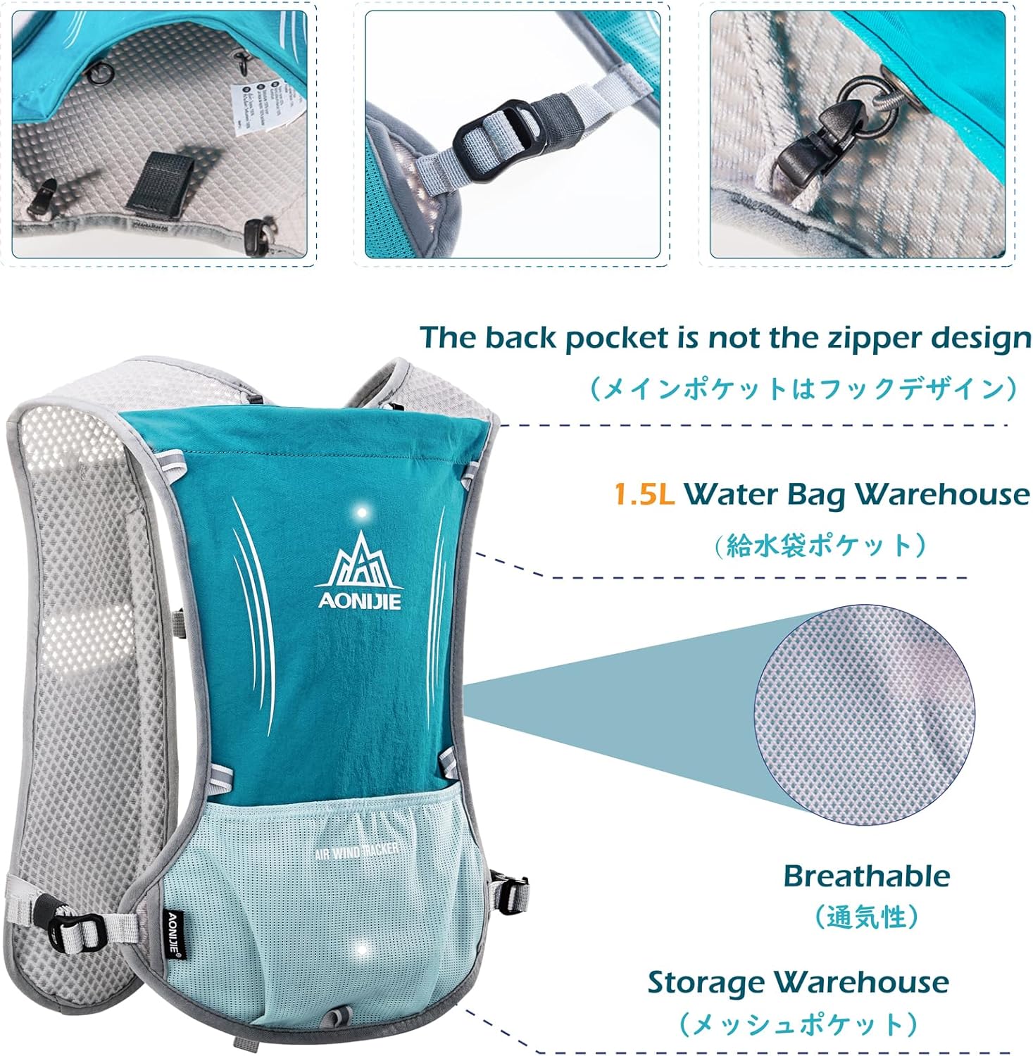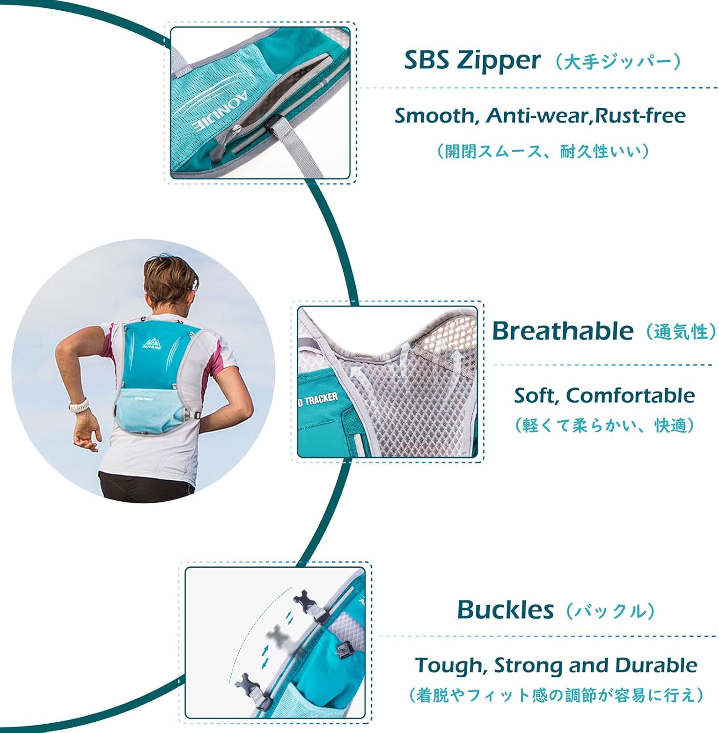 • ✅ جيدة التهوية + قابلة للتعديل — بطانة شبكية ناعمة ورقيقة لسترة الترطيب لتوفير الراحة المثلى وامتصاص العرق بكفاءة. تساعد الأشرطة المرنة القابلة للتعديل على احتواء سترة السباق على جسدك بشكل جيد.
