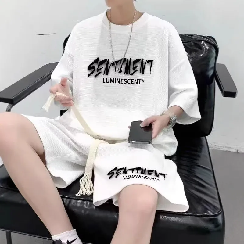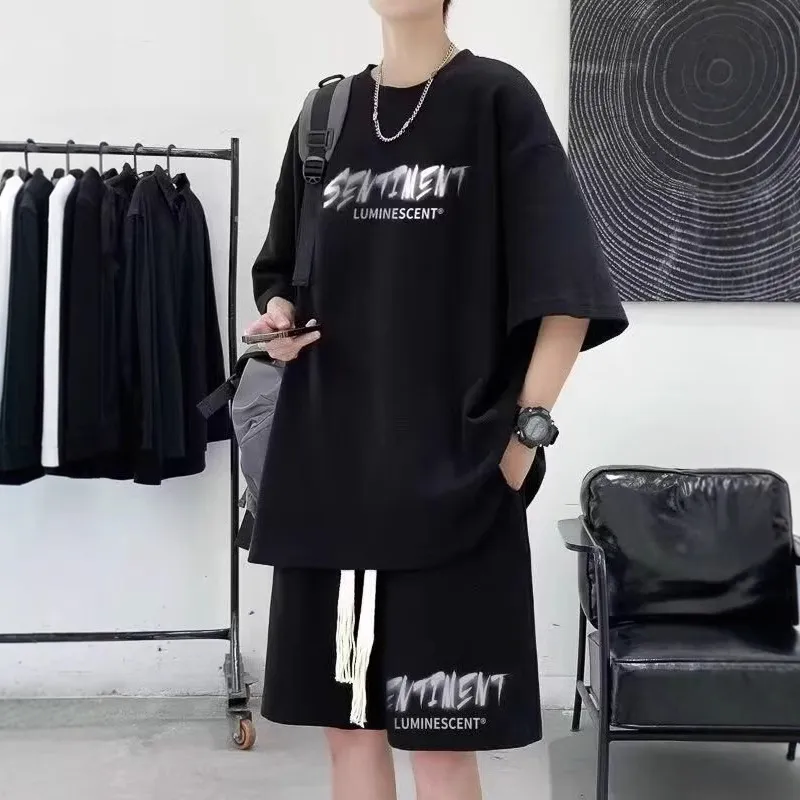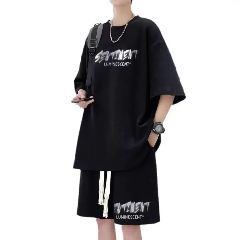 طقم كاجول صيفية شبابية غير رسمية مع شورت وسيم للرجال بأكمام قصيرة بدلة عصرية من قطعتين