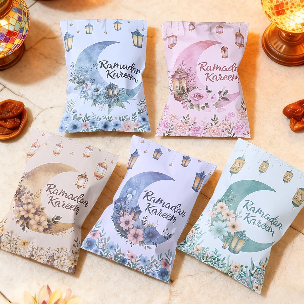 ٢٤ كيسًا من أكياس هدايا رمضان كريم، مقاس ٤.٩٢ × ٣.٠٣ بوصة، حاملات بطاقات هدايا محظوظة مع مجموعة ملصقات، تصميم زهرة القمر بالألوان المائية، زينة أظرف ورقية للعيد وحفلات رمضان...| متجر واو الأفضل ترينديول السعودية