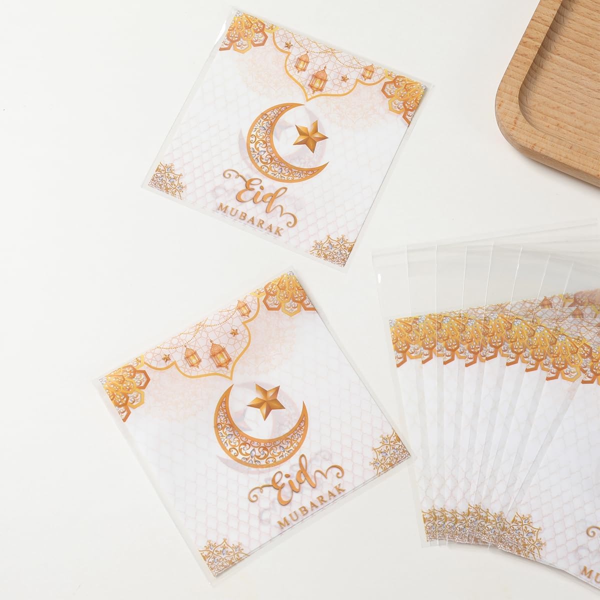 ٥٠ كيسًا صغيرًا لحلويات عيد مبارك، أكياس هدايا رمضان كريم باللونين الأبيض والذهبي على شكل هلال، أغلفة حلوى فردية ذاتية اللصق، أكياس شفافة يمكنك صنعها بنفسك لتوزيعها في حفلات المسلمين | متجر واو الأفضل ترينديول السعودية