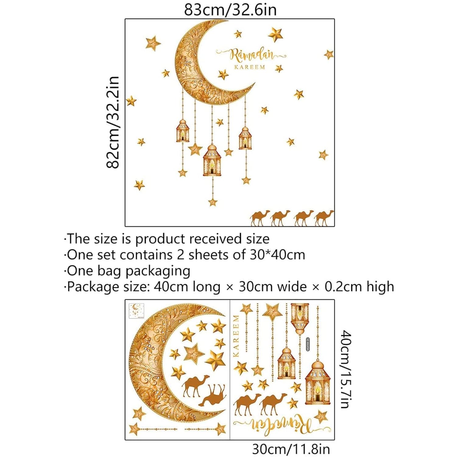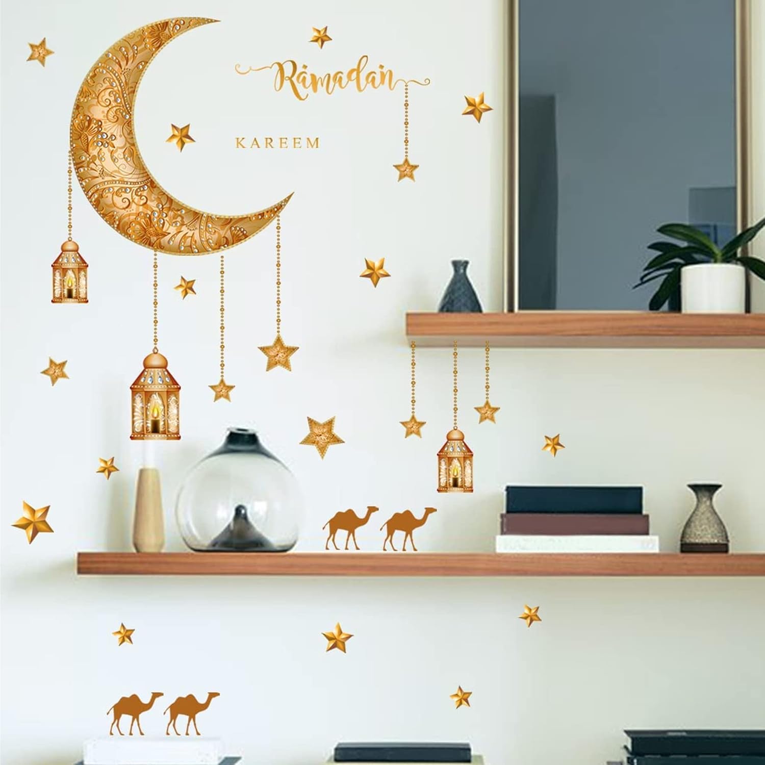 مثالي لمختلف الأماكن: تحتوي الملصقات على نجوم، وأهلة، وفوانيس، وجمال، وغيرها من العناصر، ويمكنك ترتيبها بأشكال متنوعة حسب ذوقك.